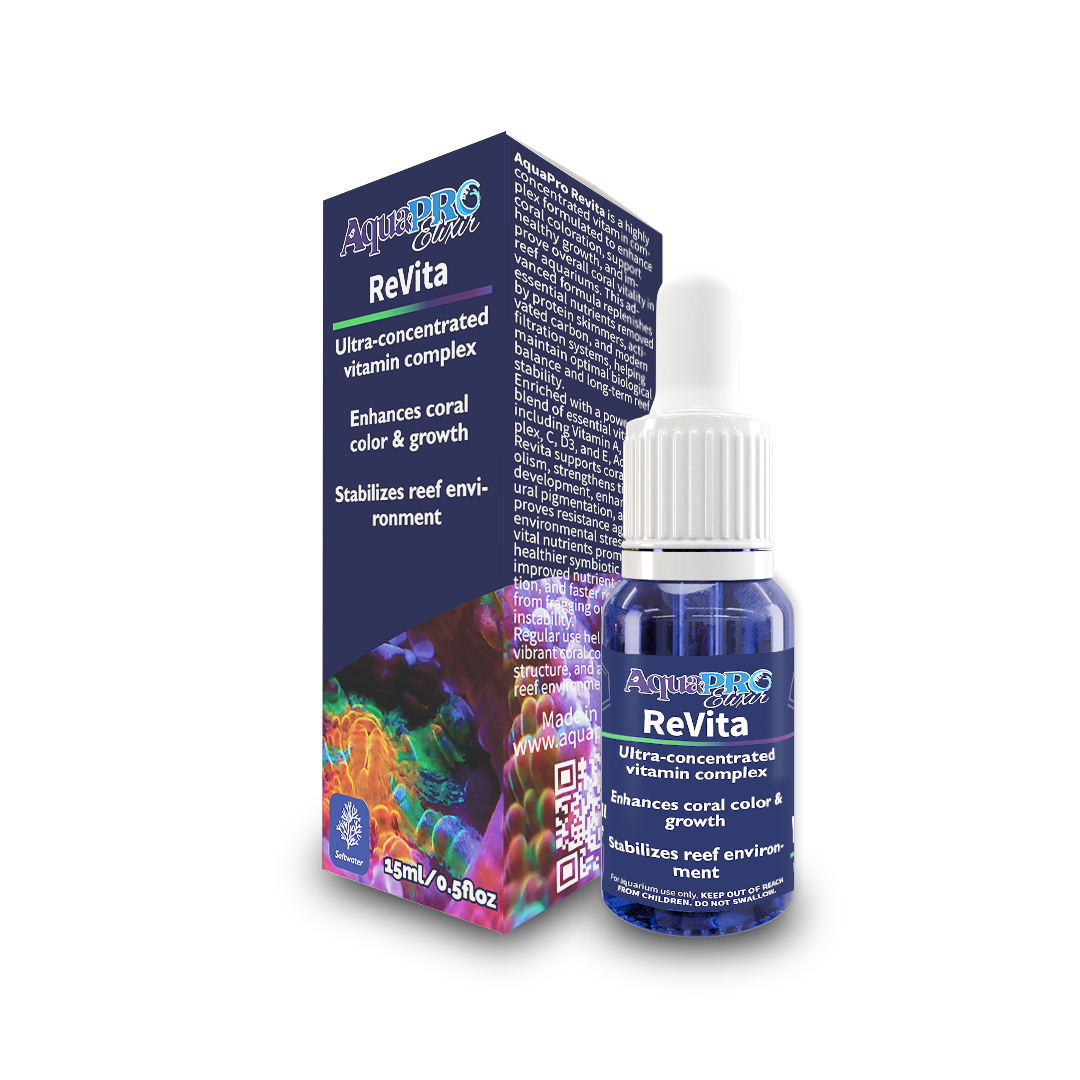 AquaPro ReVita is a highly concentrated vitamin complex formulated to enhance coral coloration, support healthy growth, and improve overall coral vitality in reef aquariums. This advanced formula replenishes essential nutrients removed by the protein skimmer, activated carbon, and modern filtration systems, helping maintain optimal biological balance and long-term reef stability.